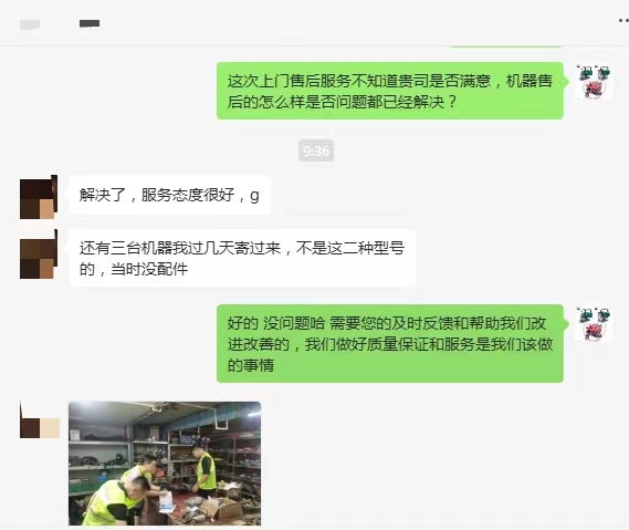 此次現(xiàn)場上門維修服務(wù)得到了客戶的集體好評(píng),客戶反饋說:“萊斯特是廠家品牌,售后團(tuán)隊(duì)排除機(jī)器故障響應(yīng)及時(shí)、處理高效,接到我們售后報(bào)修請求,立即派來維修工程師,為了不因?yàn)榕浼⒄`設(shè)備維修時(shí)間,隨身攜帶了多種可能使用上的配件,通過專業(yè)判斷很快就維修好了機(jī)器,還順便幫我們檢測了其他機(jī)器有沒有問題,非常值得信任!”